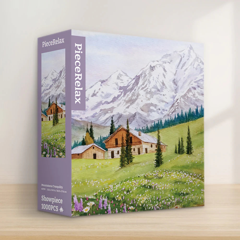 - Breathe in the mountain air with PieceRelax! Featuring charming cabins, vibrant wildflowers, and majestic snow-capped peaks, this puzzle brings a peaceful alpine retreat to your table.