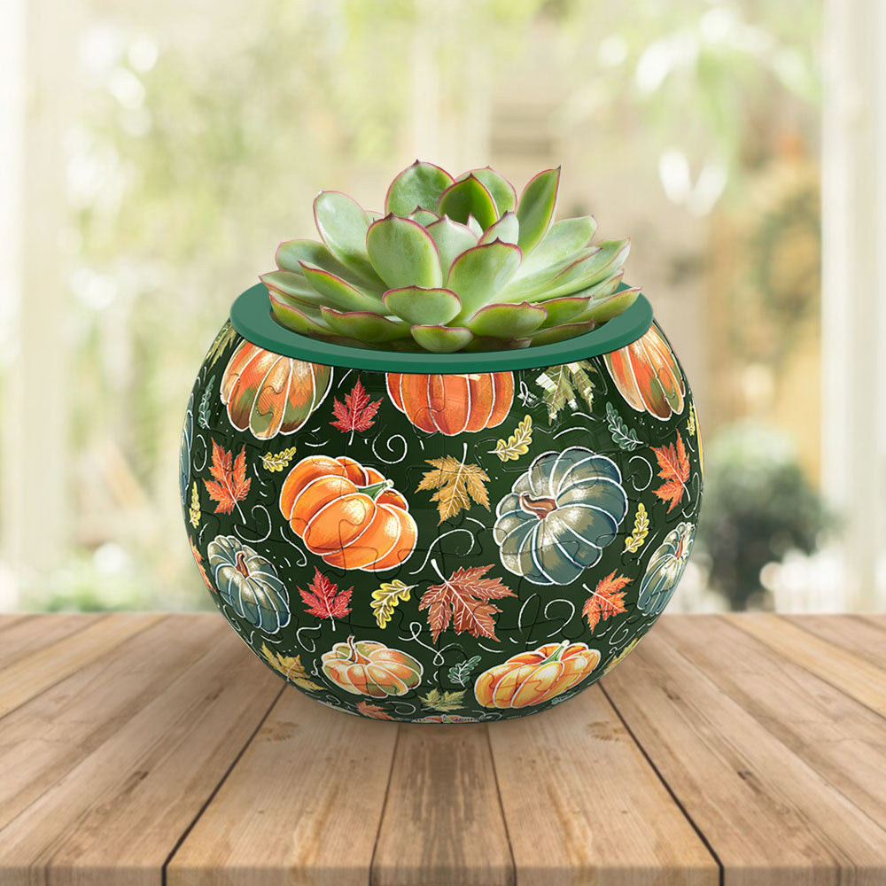 - Adorned with an array of pumpkins and autumn leaves, this charming plant pot is the perfect way to bring the fall spirit into your home. Celebrate the cozy charm of pumpkin season with the PieceRelax Puzzle Planter.