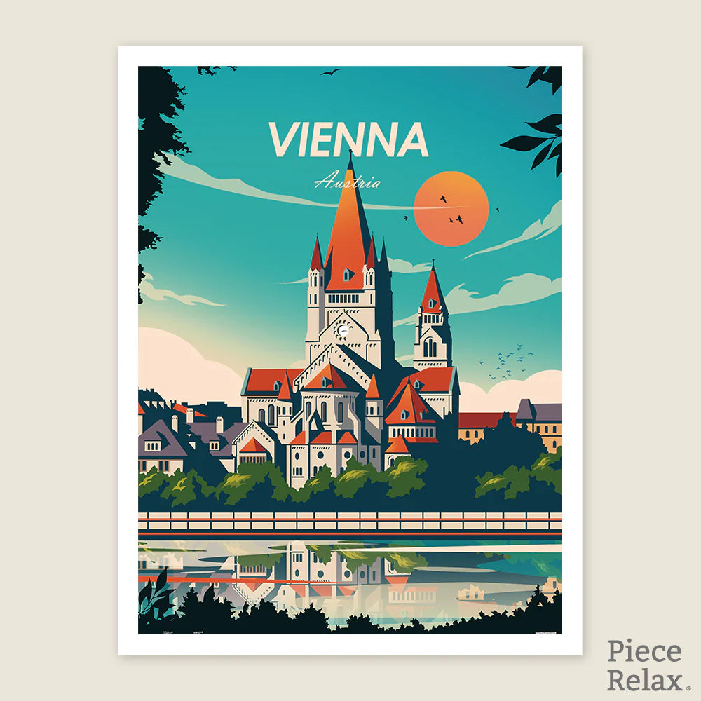 - Take a visual journey with this captivating Vienna travel poster. Explore the city's charm and elegance through its captivating art and iconic landmarks.